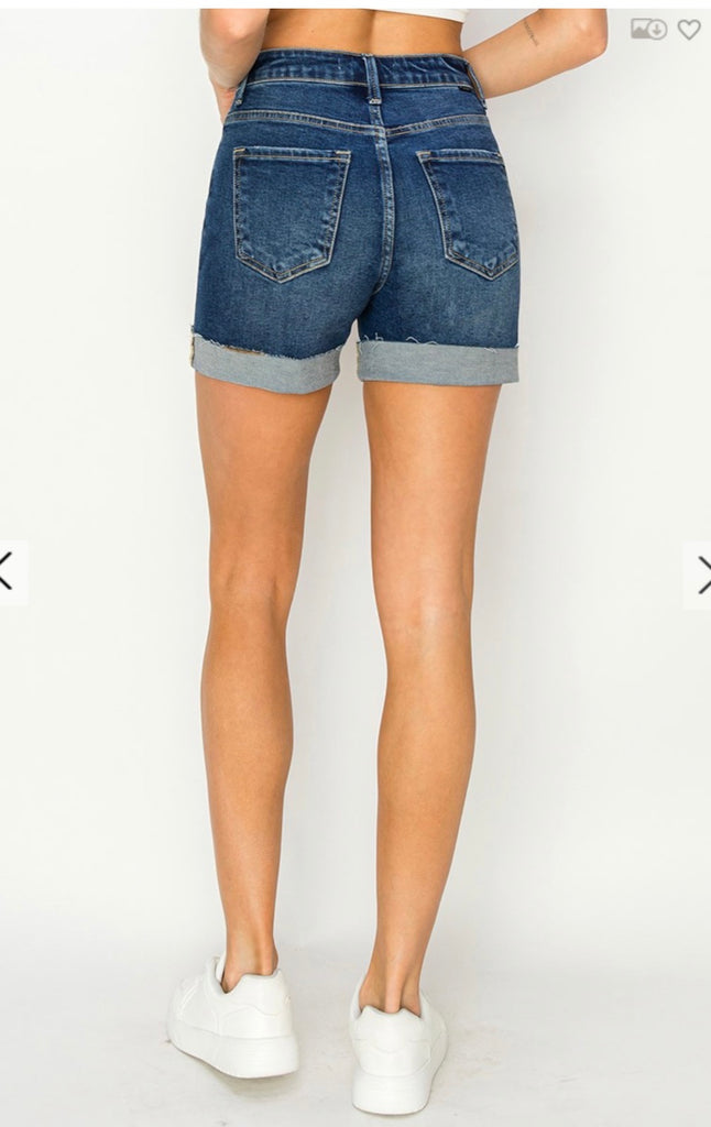 These Risen high-rise denim shorts are the perfect mix of flattering and fun ☀️ Featuring a structured high-rise waist and a cuffed hem, they give you that classic denim look with a modern, leg-lengthening fit. The darker wash makes them easy to dress up or down, while the cuffed hem adds a polished finish (and yes—you can wear them uncuffed too!).